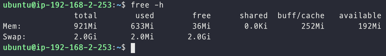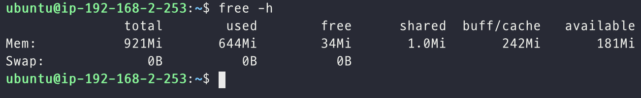// swap 파일을 생성해준다. (메모리 상태 확인 시 swap이 있었지만 디렉토리 파일은 만들어줘야한다.)