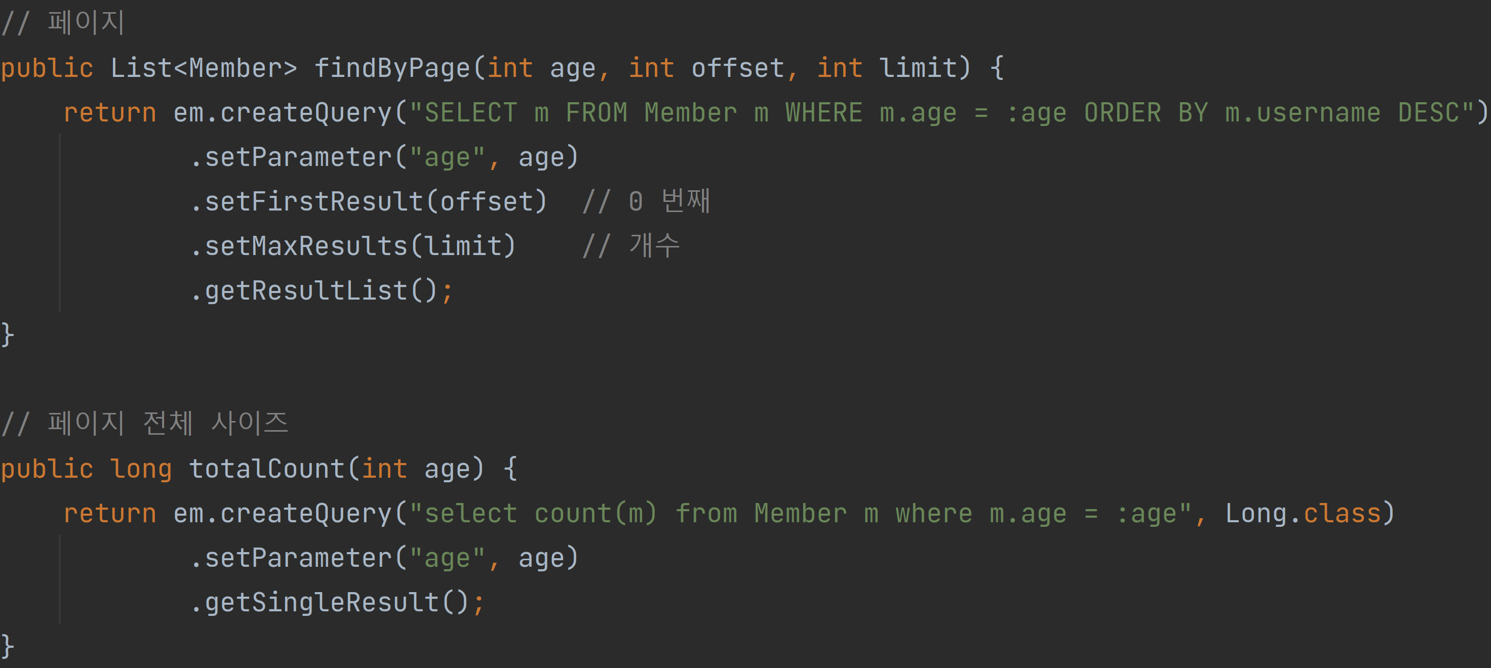 countQuery = “select count(m.username) from Member m”) // count에 대한 쿼리