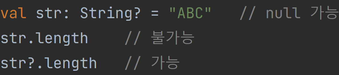 1. Safe Call : null이 아니면 실행하고, null이면 실행하지 않는다.
