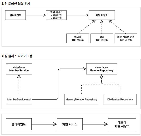 - 인터페이스 : 회원 서비스, 회원 저장소