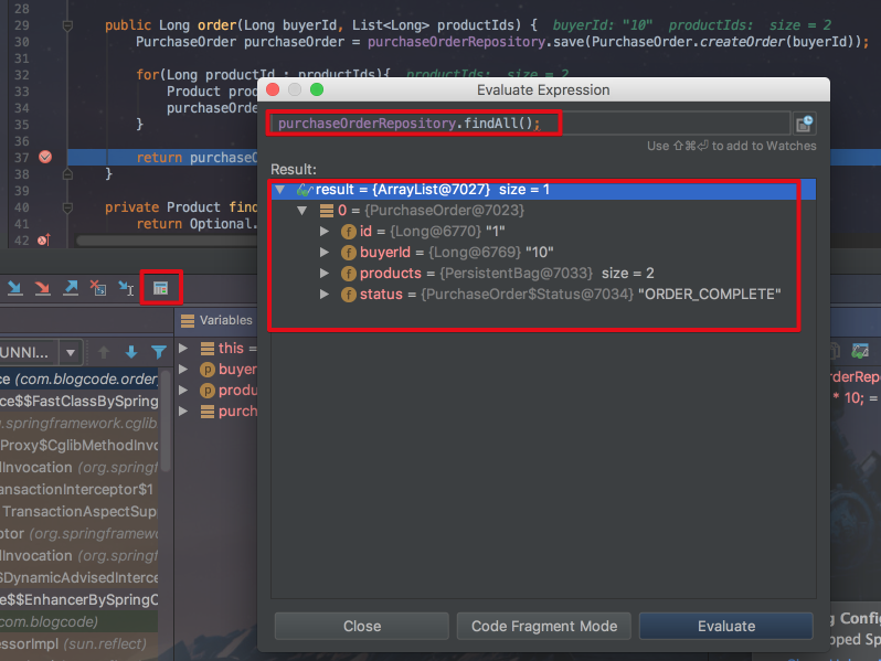 1. Evaluate : 해당 위치에서 원하는 메서드 사용
